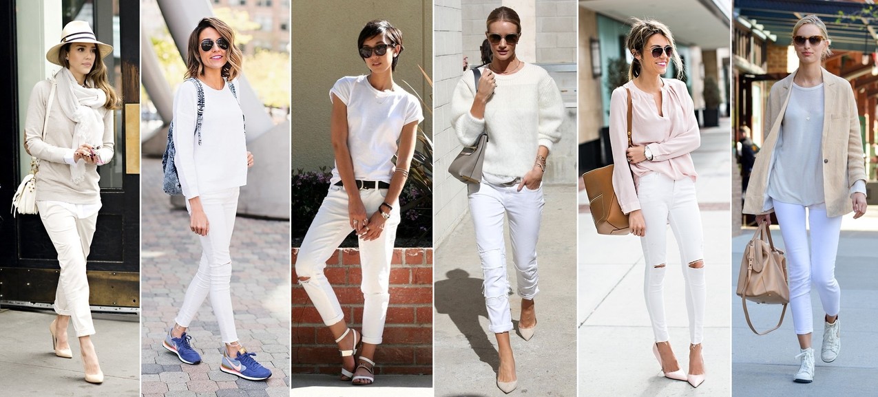 Do białych spodni możemy uzyskać cały szereg ciekawych stylizacji.